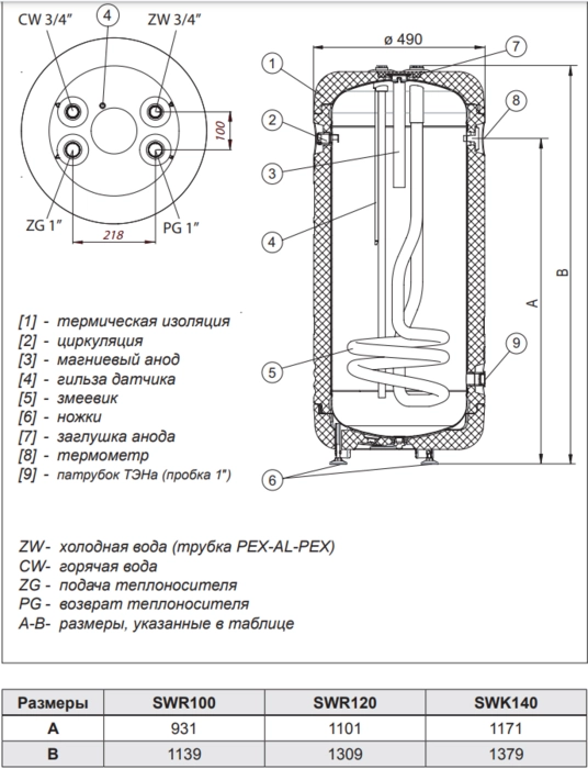 Технические характеристики Бойлер косвенного нагрева KOSPEL SWR Termo Eco от БелЭлектроТоп — продажа и установка отопительного оборудования