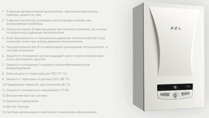 Давление в контуре отопления, бар3 | ИзготовительE.C.A. Турция | ИмпортерООО "Тепловые Решения" |