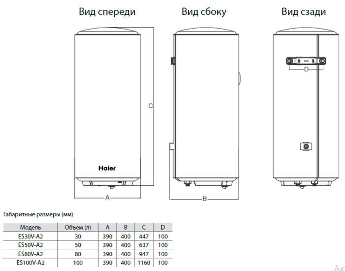Электрический водонагреватель HAIER ES100V-A2 от belotop.by - продажа и установка отопительного оборудования
