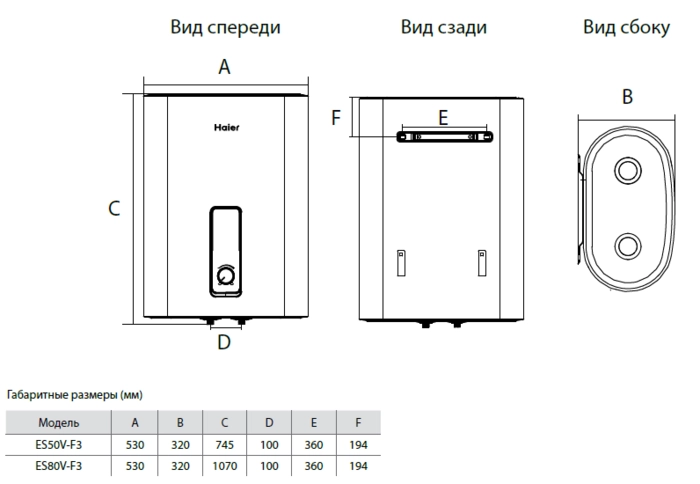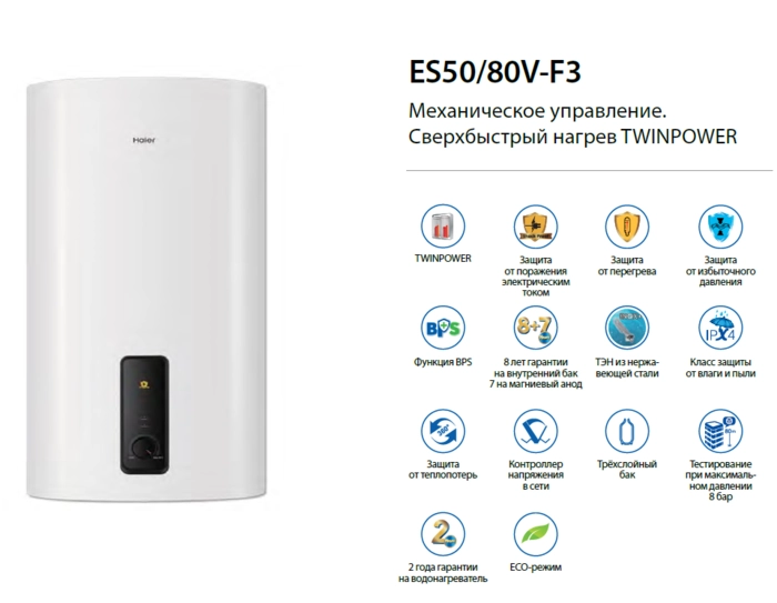 Технические характеристики Электрический водонагреватель HAIER ES50V-F3 от БелЭлектроТоп: продажа и установка отопительного оборудования