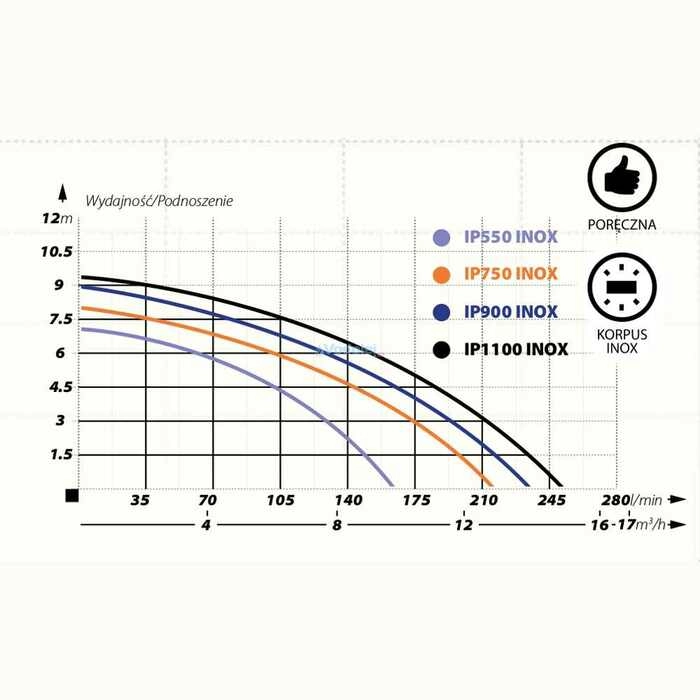Фекальный насос IBO IP 750 INOX корпус выполнен из нержавеющей стали, предназначена для откачивания чистой и загрязненной воды. Насосы комплектуются пластиковым штуцером „ёлочка” для возможности подключения шлангов разных диаметров. Все насосы укомплектованы поплавковым выключателем. Отличительной особенностью данной серии является возможность перекачивания неволокнистых частиц диаметром до 35 мм. Насос обладает отлично сбалансированными напорно-расходными характеристиками при производительности насоса 13 м3/час его максимальный напор составляет 7.5 метров.