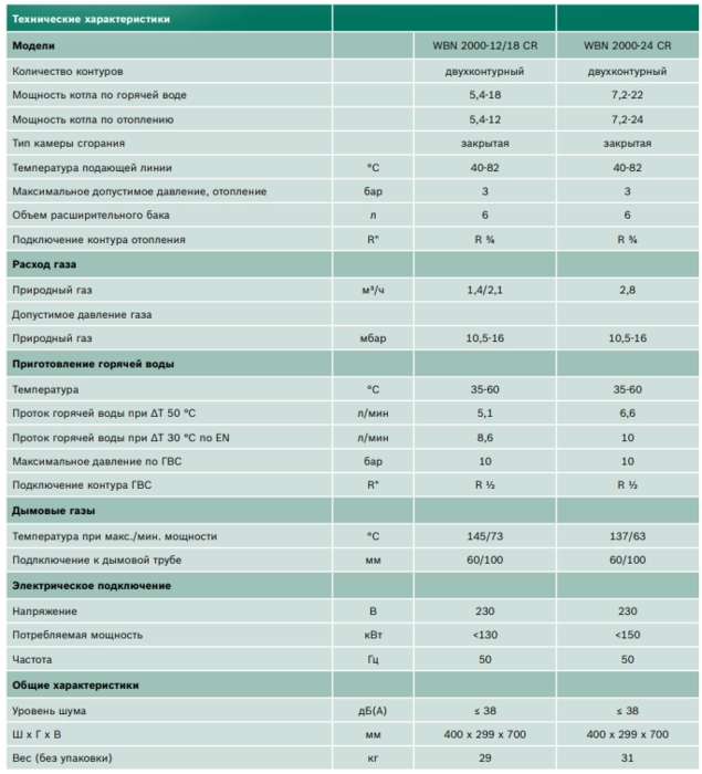 Технические характеристики Газовый котел Bosch Gaz 2000 W WBN 24 CRN
