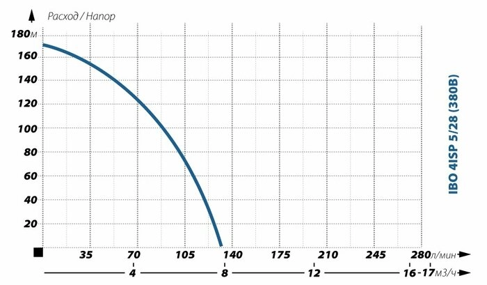 Технические характеристики Глубинный насос для воды IBO 4ISP 5/28 (380В)
