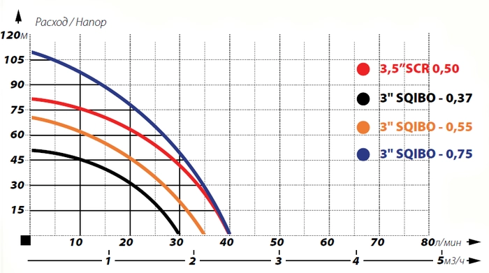 Технические характеристики Глубинный насос для воды IBO SQIBO-0,75