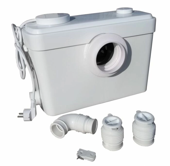 Канализационная насосная установка или попросту санитарная станция SANIBO 5 является незаменимым решением проблемы водоотведения в квартирах, частных домах, коттеджах. Данная станция позволяет с легкостью отводить стоки из туалета, душа, стиральной машины и др. в коллектор, который может быть установлен на удалении либо выше уровня самой установки. Основной особенностью является наличие режущего механизма из нержавеющей стали. Крупная фракция, попадая внутрь насоса измельчается и отправляется к точке сброс. Наличие 3 входов позволяет использовать станцию SANIBO 5 для разных источников одновременно.
