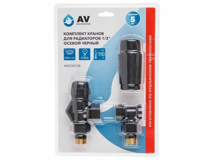 Комплект кранов для радиаторов 1/2 дюйма осевой черный AV Engineering - БелЭлектроТоп отопительное оборудование
