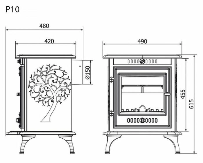 Чугунная печь KAWMET P10 с отличным дизайном и великолепной ценой, используется для отопления помещений, а также как предмет интерьера. Выполнена из чугуна класса EN-GJL- 200 под давлением с гладкими стенками без пор и обработки. Глубина топки под закладку дров 25 см, максимальная ширина топки 33 см, длина используемых дров до 33 см.Чугунная печь KAWMET P10 выгодно отличается более точной регулировкой подачи воздуха через нижнюю часть дверцы под колосниковую решетку. Открыв ее на максимум, вы подаете к дровам оптимальное количество воздуха для быстрого розжига.Во вторых регулируемая подача воздуха на стекло, подавая воздух на внутреннюю сторону стекла, вы тем самым создаете направленный поток, который будет препятствовать оседанию сажи, стекло значительно дольше будет оставаться чистым, что бы вы наслаждались игрой живого укрощенного огня.Выход дымовых газов может быть как вверх так и перемещён на заднюю стенку печи, сверху при этом образуется ровная нагревательная поверхность размером 45х33 см, а дымоходные трубы можно спрятать в стене за печкой.Особенности печи P10:Топка изготовлена из высококачественного чугуна с минимальной толщиной стенки 10 мм.Толстое декоративное литьё увеличивают площадь теплоотдачи в помещение.Жаростойкое стекло Robax, с очень низким температурным расширением, способно выдерживать температуру до 800 °С.Дефлектор увеличивает тепловую эффективность топки путем удлинения пути прохождения продуктов сгорания и увеличением площади теплосъёма.Дополнительная жаростойкая плита, защищающая тыльную сторону от прогорания толщиной 20 мм.Регулирование подачи воздуха в топку.Подвод наружного воздуха на стекло с регулировкой, предотвращает чрезмерное осаждение сажи.Подключение дымохода сверху или сзади.Зольный ящик.Современный дизайн и европейское качество.