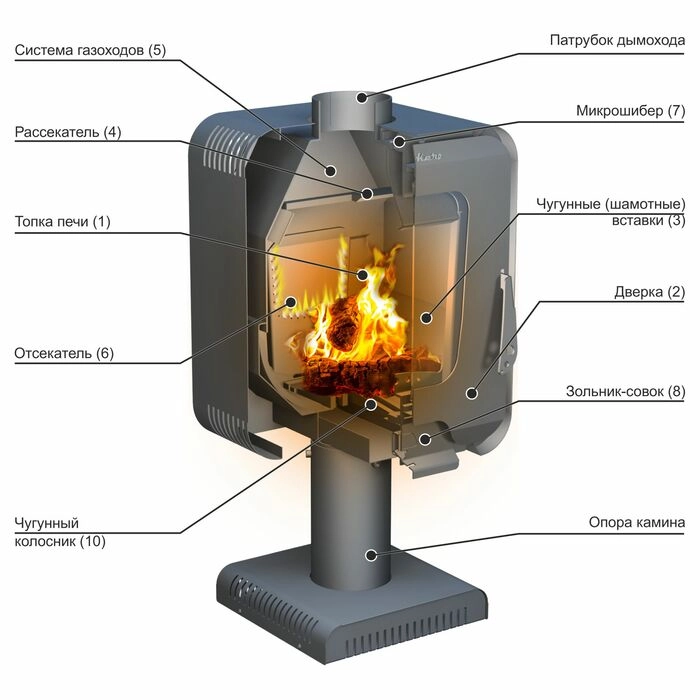 Stoker Soffit 9-S - это отопительный камин со стеклянной дверцей для обогрева помещения до 150 м³. Сочетание приятного дизайна и продуманной эргономики, применение различных режимов работы позволяют создать комфорт и уют в доме.В печи-камине Stoker Soffit 9-S предусмотрена возможность подключения системы воздухообмена. Данная опция позволяет подключать воздуховод для подачи уличного воздуха в зону горения, для его нормальной работы в случае использования камина в герметично изолированных помещениях, а также использовать его для конвективного нагрева помещения. Эту систему можно использовать для циркуляции и нагрева воздуха из смежного помещения, за счёт конвекционных потоков работающего камина.Особенности конструкции печи-камина Stoker Soffit 9-SСложная система дымоходов - увеличивает КПДШирокий диапазон регулирования режимов горенияФункция длительного горения (до 4 часов)Современный дизайн и хорошая эргономика.Удобное и понятное управления режимами горения - оптимальный и комфортный микроклимат в помещении.Защита термонагруженных элементов топки чугунными вставками.Большая дверца с жаростойким стеклом (В400xШ300 мм) с функцией «чистое стекло» и герметичным запиранием.Система направленной конвекции с возможностью подключения воздуховода сзади камина для отвода тепла в смежное помещениеВ задней части камина предусмотрена возможность подключения воздуховода для подачи наружного воздуха для горения и нагреваОхлаждаемая ручка и удобный зольник-совокПростота в обслуживании и использовании.ИсполнениеОригинальные конструктивные решения в сочетании с тщательно подобранными материалами обеспечивают высокую долговечность и надежность камина. Наиболее нагруженные термические элементы защищены толстыми и прочными чугунными элементами. Для уменьшения термических напряжений используется минимальное количество сварных швов.Внешний вид изделия может незначительно отличаться от представленного на сайте. Производитель оставляет за собой право вносить изменения в конструкцию камина с целью улучшения потребительских свойств, что может приводить к изменению внешнего вида изделия.