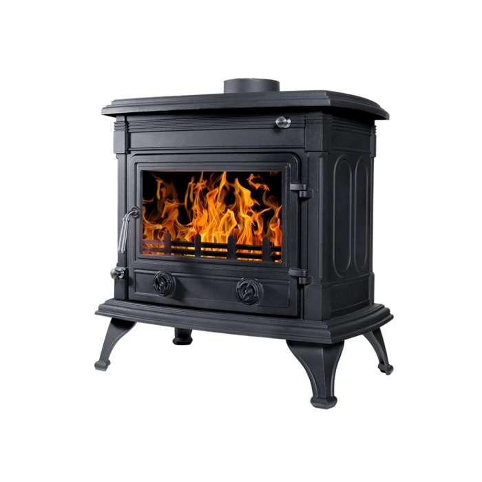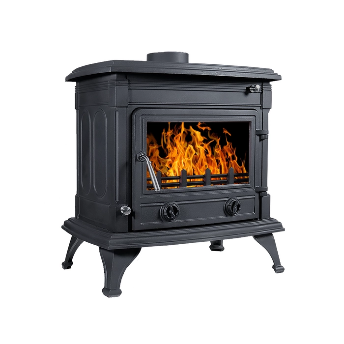 Печь-камин Везувий АST-13 "Антрацит" изготовлена из качественного чугуна с толщиной стенки 20-40 мм. Модель рассчитана на обогрев помещений объёмом до 200 м³.Топочная камера ограничена двойными чугунными стенками сзади и по бокам. Нижняя панель представляет собой колосниковую решётку с поворотным механизмом. Ручка поворотного устройства выходит на переднюю панель печи и позволяет сбрасывать излишки золы и мелких углей в зольный ящик, не открывая двери печи.Дверь изготовлена из чугуна, оснащена большим панорамным стеклом. Чистота стекла во время работы обеспечивается системой подачи воздуха на внутреннюю сторону стекла. Воздух отсекает дымовые газы и пламя от поверхности стекла, предотвращая закопчение и потемнение стекла. Ручка управления системой размещена в правой верхней части передней панели, над дверью.В нижней части двери слева и справа размещены поворотные задвижки-крутилки для подачи воздуха на первичное горение.Вторичный дожиг в печи-камине обеспечивается двойными боковыми стенками: здесь между стенкой и внутренней облицовкой топки из чугуна есть каналы, идущие из поддувала под нижний край пламегасителя, в зону активного горения. Воздух для вторичного дожига из области размещения зольного ящика поступает в верхнюю часть топки, усиливая горение и повышая теплоотдачу.Зольный ящик коробчатого типа изготовлен из стали и закрывает пространство под колосниковой решёткой.Патрубок дымохода универсальный - со сменным положением, может быть установлен сверху или сзади, в зависимости от размещения печи в помещении.Изящные ножки и литой узор с внешней стороны стенок делают печь-камин AST-13 интересным интерьерным решением, которое отлично впишется в дизайн дома и станет горячим сердцем любого пространства.