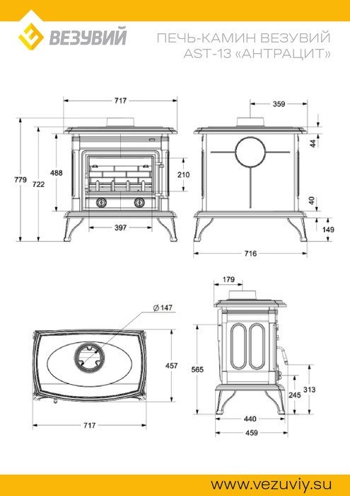 Технические характеристики Печь-камин Везувий АST - 13 Антрацит