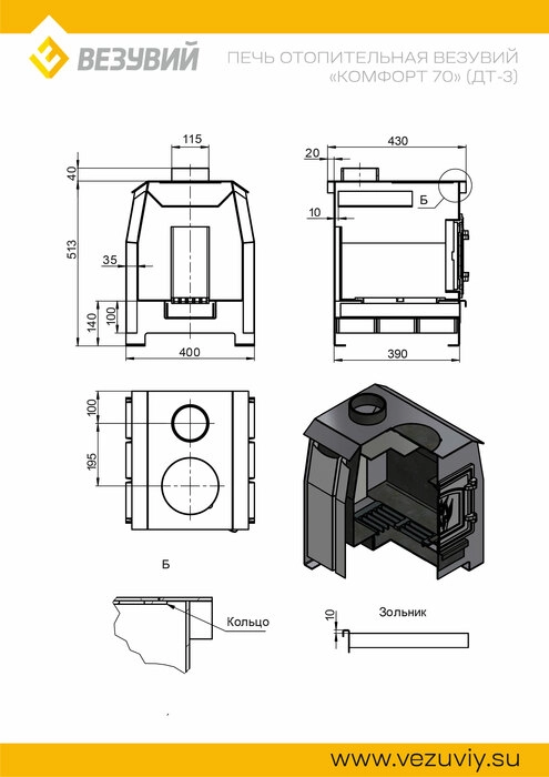 Технические характеристики Печь отопительная Везувий "Комфорт 70" (ДТ-3С)