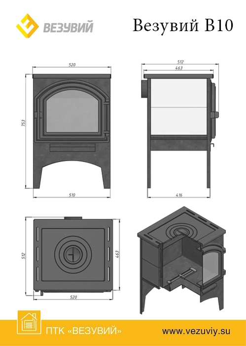 Технические характеристики Печь отопительная Везувий В10 (224) – Надёжное тепло для дома и дачи