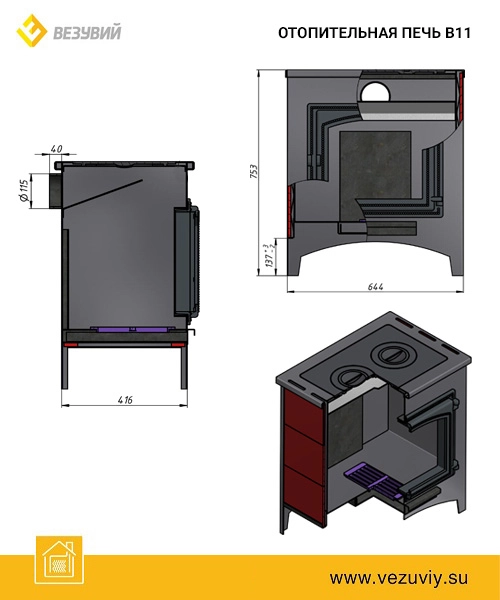 Печь отопительная Везувий В11 (224) – Эффективное тепло для дома и дачи