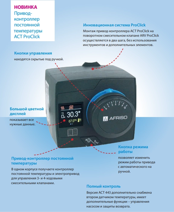 Отопительное оборудование AFRISO ACT 343 от БелЭлектроТоп: Привод-контроллер постоянной температуры