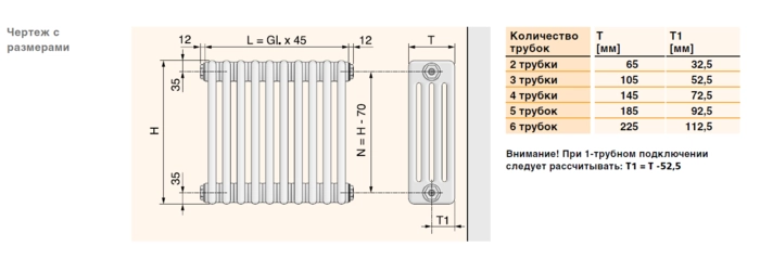 Технические характеристики Радиатор стальной трубчатый Arbonia 2180 5 секций с нижним подключением от БелЭлектроТоп - продажа и установка отопительного оборудования