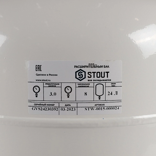 Технические характеристики Расширительный бак STOUT для ГВС 24 л. (STW-0015-000024)