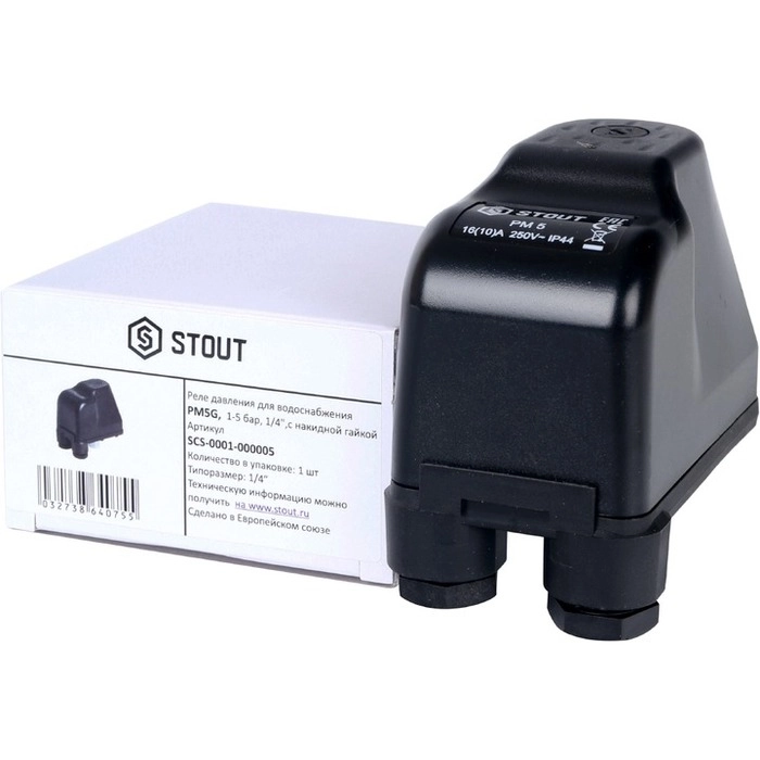 Реле давления для водоснабжения PM5G, 1-5 бар, 1/4", с накидной гайкой STOUT ( SCS-0001-000005)