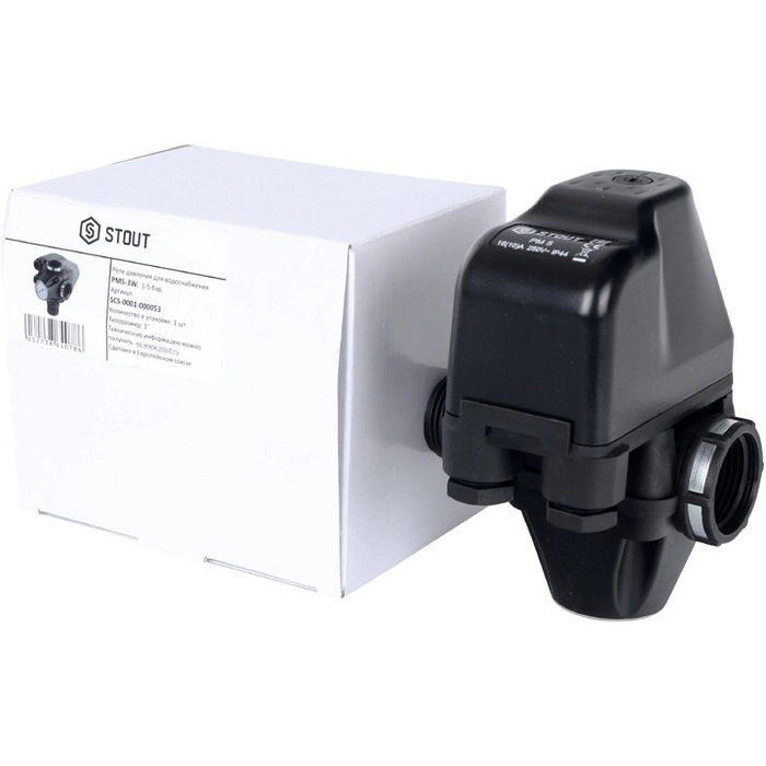Реле давления для водоснабжения со встроенным манометром PM5-3W, 1-5 бар STOUT (SCS-0001-000053)