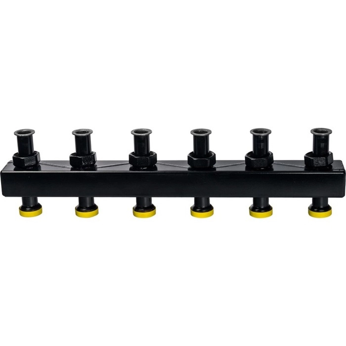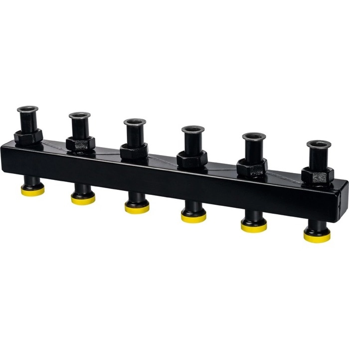 Распределительный коллектор STOUT представляет собой одну стальную коробчатую трубу прямоугольного сечения, к которой снизу и сверху соосно приварены парные патрубки (входные и выходные).Сделано в Италии