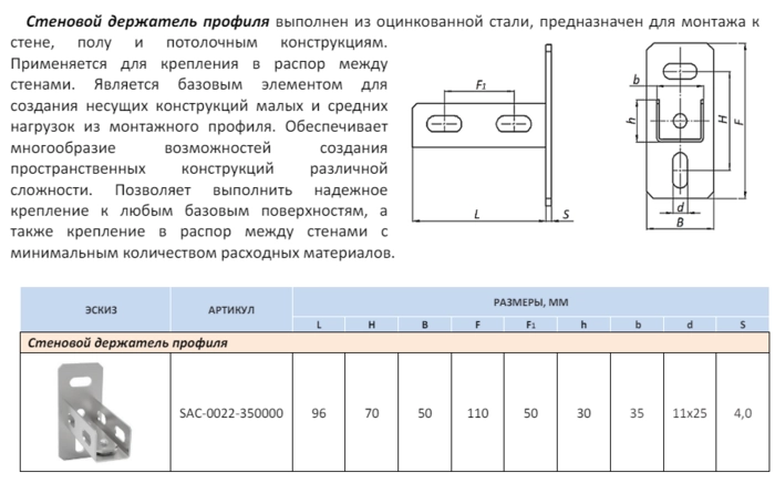 Технические характеристики Стеновой держатель профиля STOUT для отопительных систем от БелЭлектроТоп