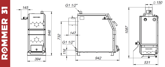 Технические характеристики Твердотопливный котел ROMMER RSB 31