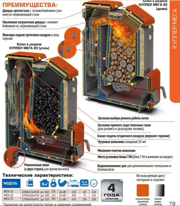 Преимущества твердотопливного котла ТЕПЛОДАР Куппер МЕГА-20