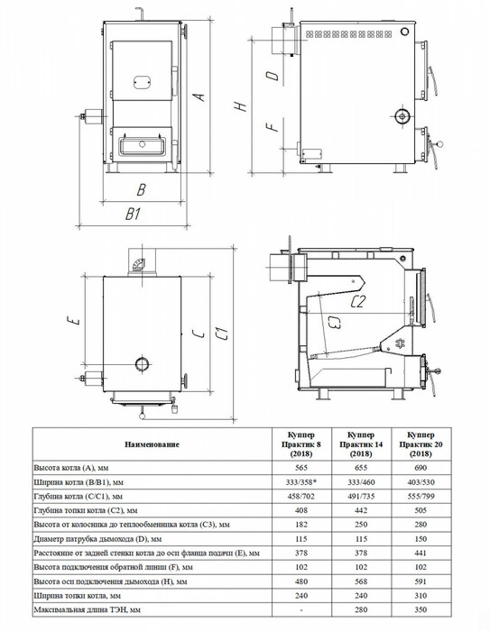 Технические характеристики Твердотопливный котел ТЕПЛОДАР «Куппер Практик» 14 1.1 - продажа и установка отопительного оборудования от БелЭлектроТоп