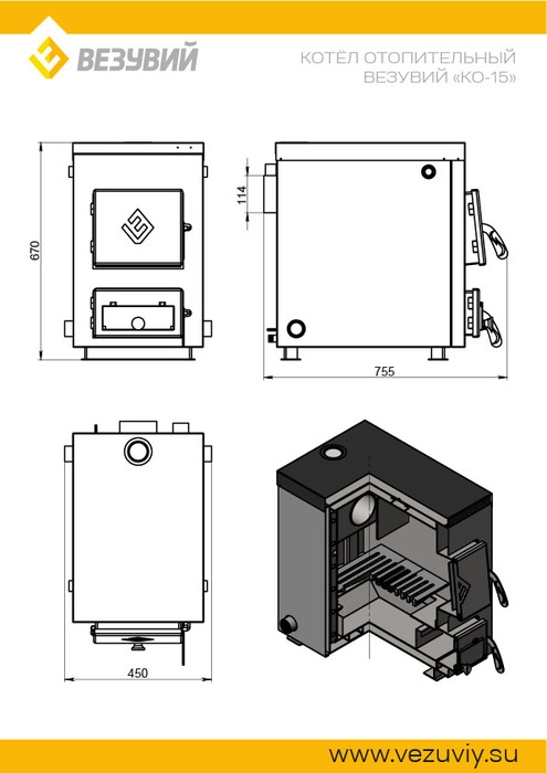 Технические характеристики Твердотопливный котел Везувий КО-15 от БелЭлектроТоп - продажа и установка отопительного оборудования