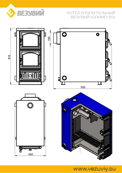 Технические характеристики Твердотопливный котел Везувий Олимп 20 от БелЭлектроТоп: Продажа и установка отопительного оборудования