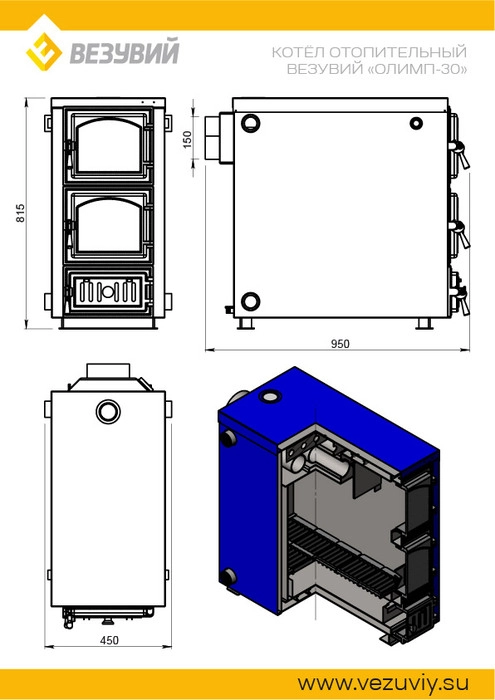 Технические характеристики Твердотопливный котел Везувий Олимп-30 от БелЭлектроТоп: продажа и установка отопительного оборудования