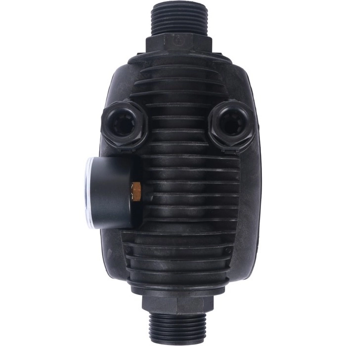 Устройство управления насосом BRIO 2000-М представляет собой реле с мембранным приводом для коммутации электрической цепи насоса, срабатывающее по давлению воды. Оно позволяет автоматизировать включение и выключение насоса, способного создавать давление не менее 2 бар. Насос включается, когда давление в системе падает при открытии водоразборных кранов, и выключается, когда краны закрываются. Если по какой-либо причине вода в системе отсутствует, реле выключает насос, защищая его от «сухого хода». Встроенный манометр облегчает контроль над давлением при настройке устройства и при его работе.