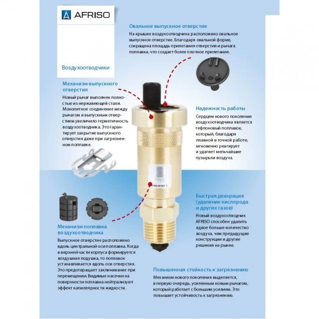 Технические характеристики Воздухоотводчик Afriso автоматический 1/2 - Надежные решения для отопления от БелЭлектроТоп